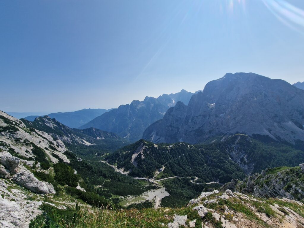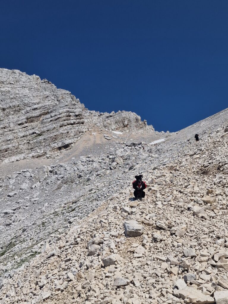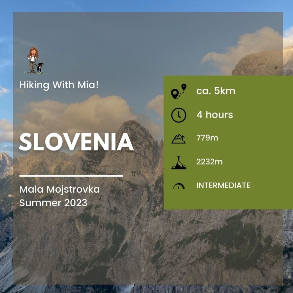 For our hike, I relied on @wikiloc. We aimed for Mala Mojstrovka’s peak following this track https://shorturl.at/xNQ48. The nearly 5-kilometer trek took us around 4 hours. It was in July, the day was quite warm, and we used up all the water I’d packed, typically 4 liters for both of us (Mia carries 1l in her backpack, while I bear the rest). We found snow on the way as well, where Mia was able to cool down ❄️