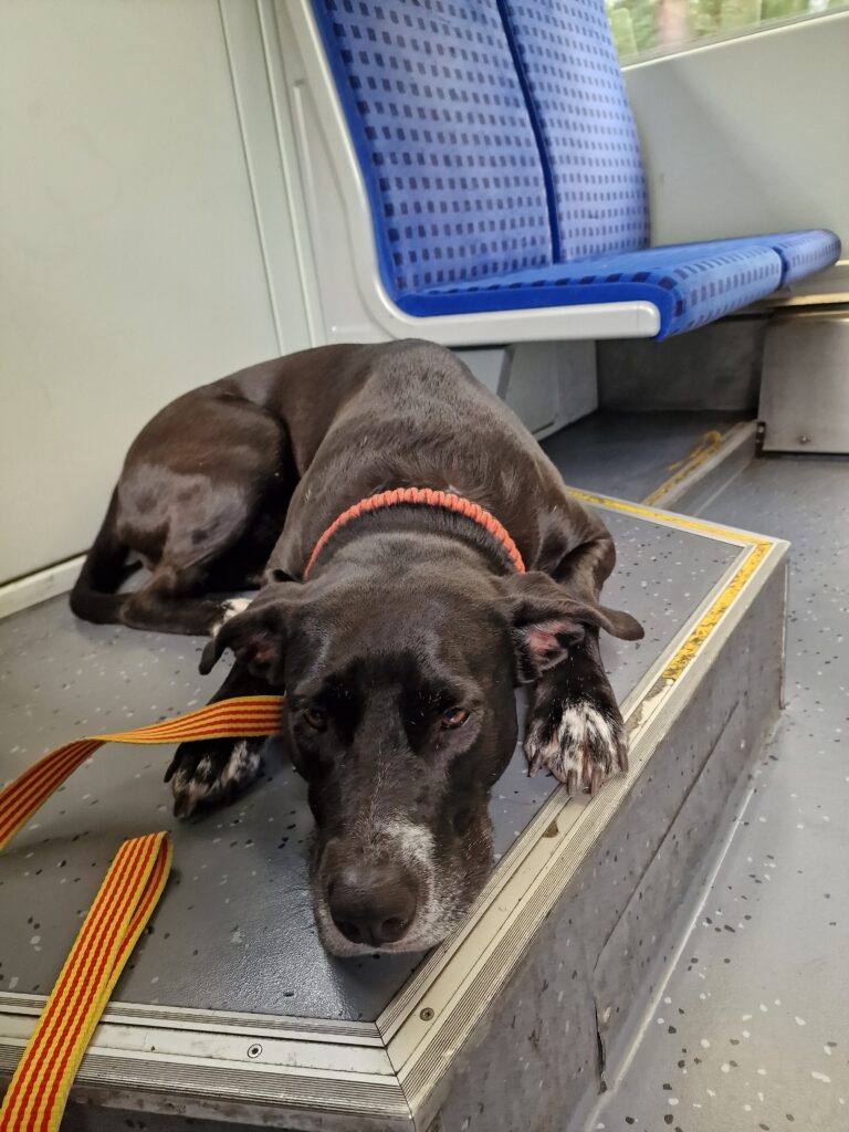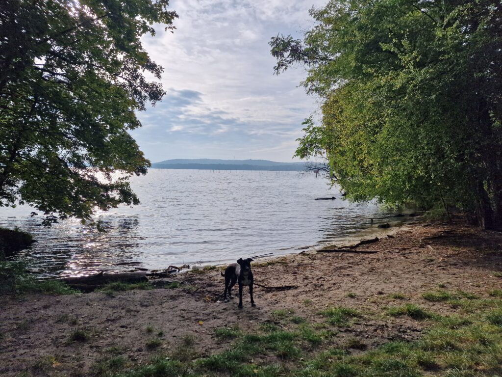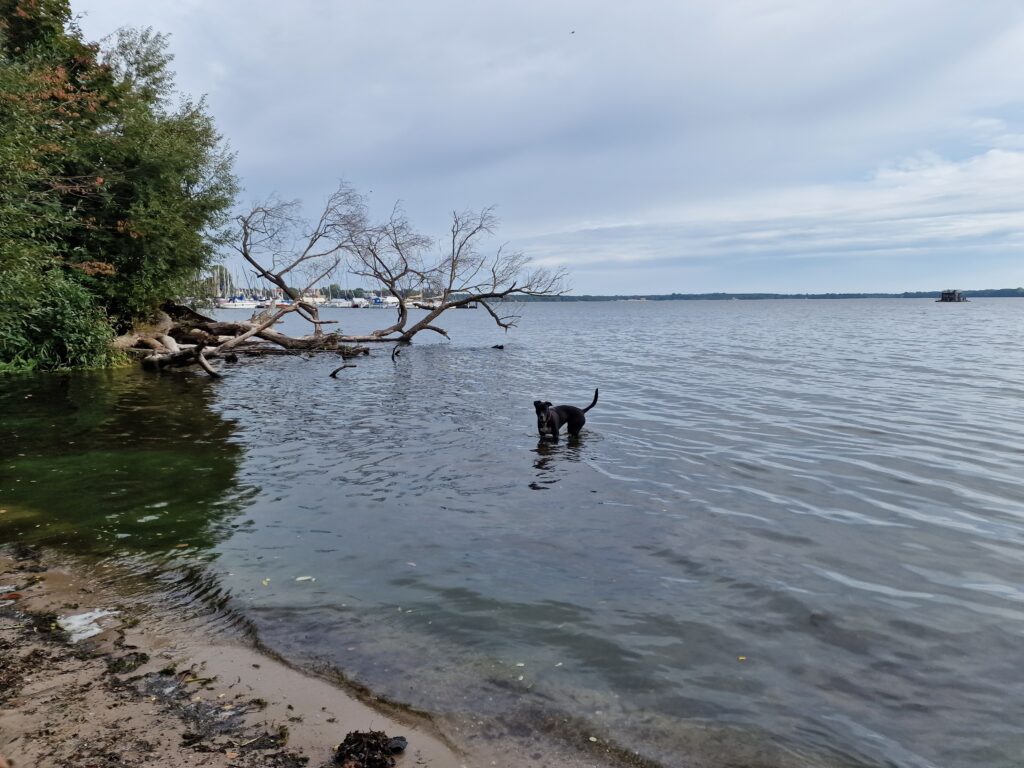 It took us around 3h in total (roughly 15km) plus 2h (back and forth) to reach Friedrichshagen by train. The path is super easy and the majority of it is pavement. On a Friday there weren’t many bikes or people but despite it, you have two paths for one so you shouldn’t have a problem being bothered by bikers who do competitions over who is the faster 🙂 The path goes along the Großer Müggelsee so Mia had time to swim/drink and to run in the forest. I was able to leave her to run freely. However, I always respect everyone. I will do a post another day about this.